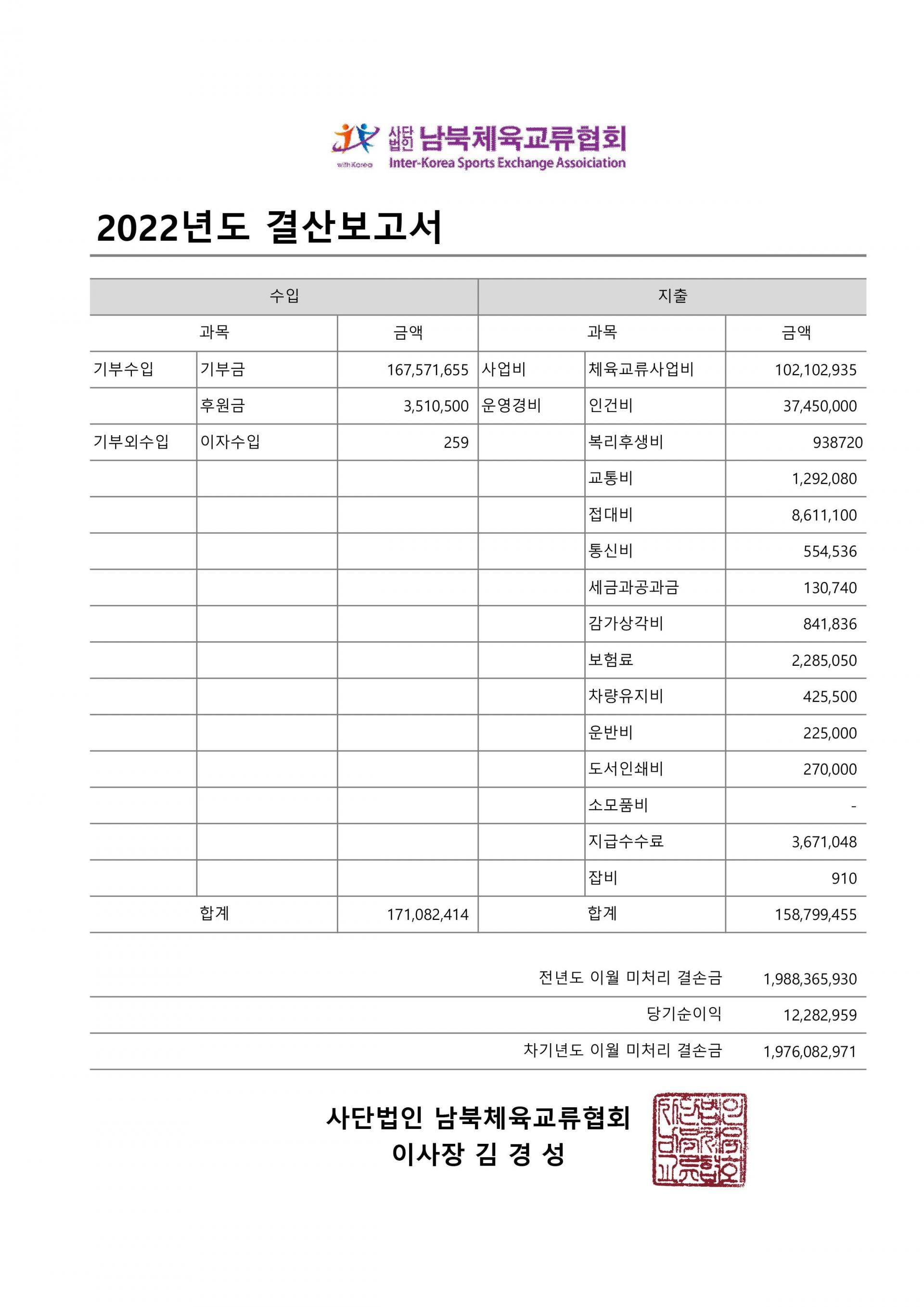 [경영공시] 남북체육교류협회 2022년 결산보고서